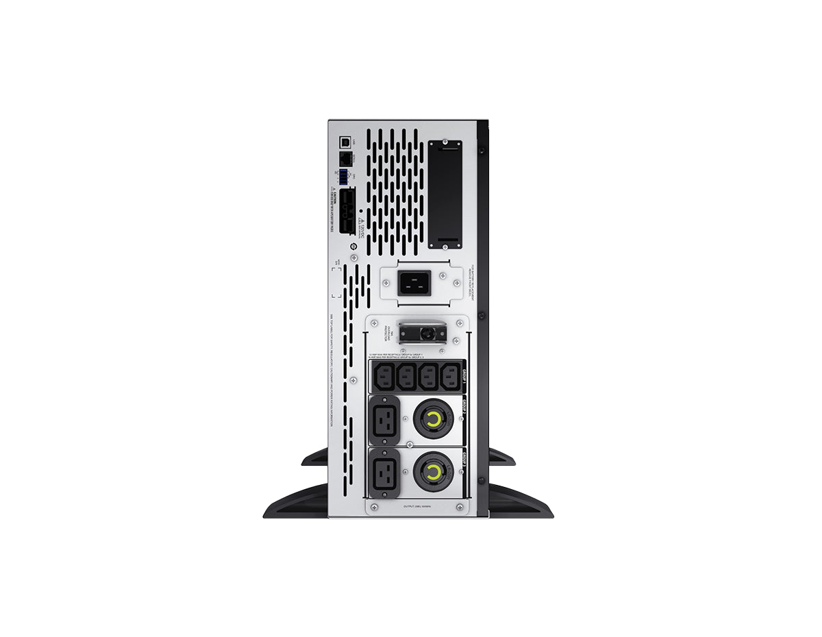 Equipped with multiple output connections including 2 NEMA L6-20R, 4 IEC C13, and 2 IEC C19 outlets, this UPS supports flexible power distribution. The SmartSlot enables advanced remote monitoring and management integration. Its 4U convertible rack/tower design is optimized for space-constrained installations.