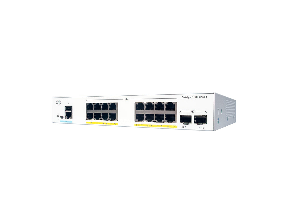 The Cisco Catalyst C1000-16T-2G-L Switch is a reliable and flexible networking solution designed for small businesses and branch offices. Featuring 16 Gigabit Ethernet ports and 2 SFP uplinks, this switch provides high-performance connectivity to support a wide range of network devices. The fanless design ensures silent operation, making the C1000-16T-2G-L an ideal choice for noise-sensitive environments while offering advanced security and easy management options.