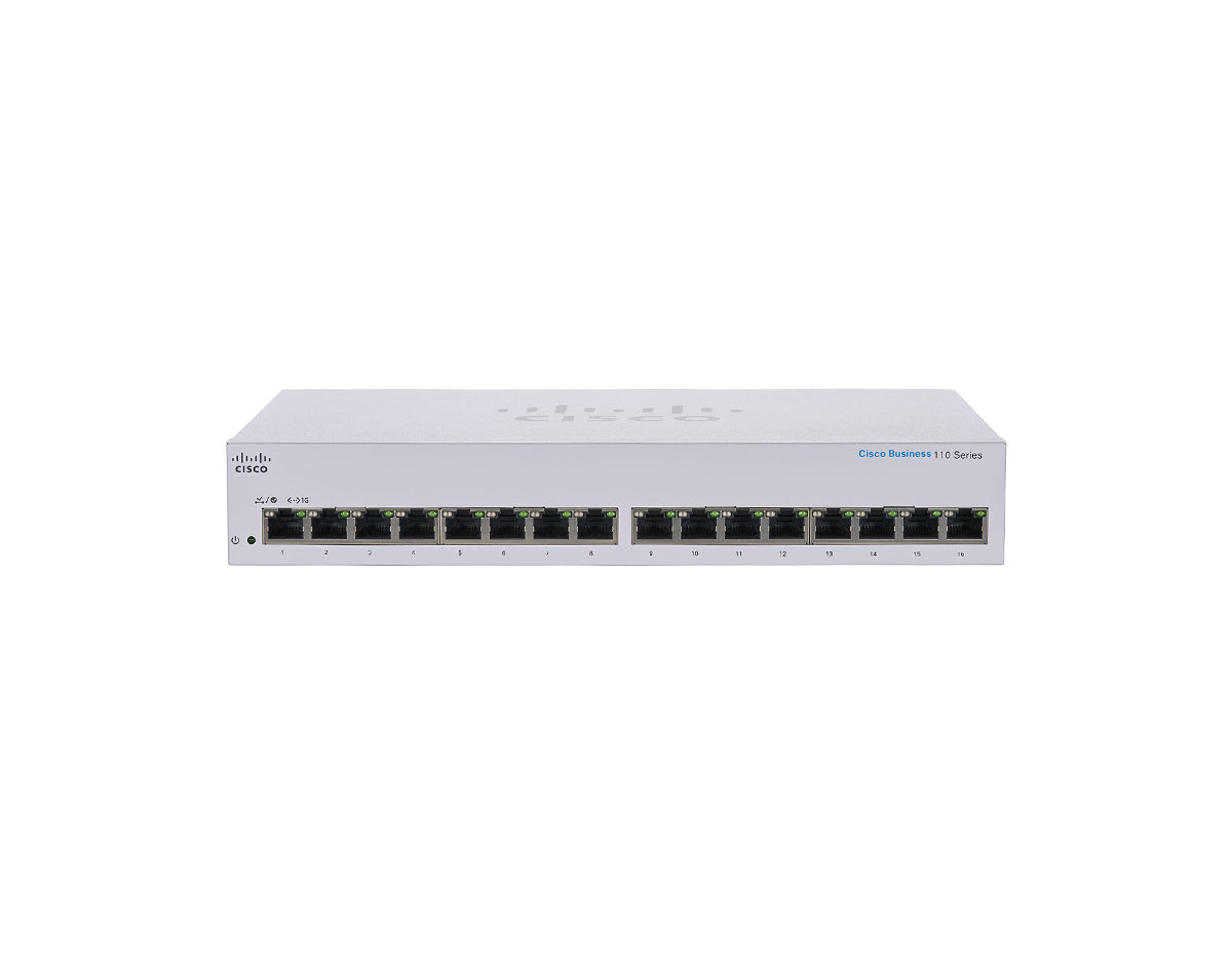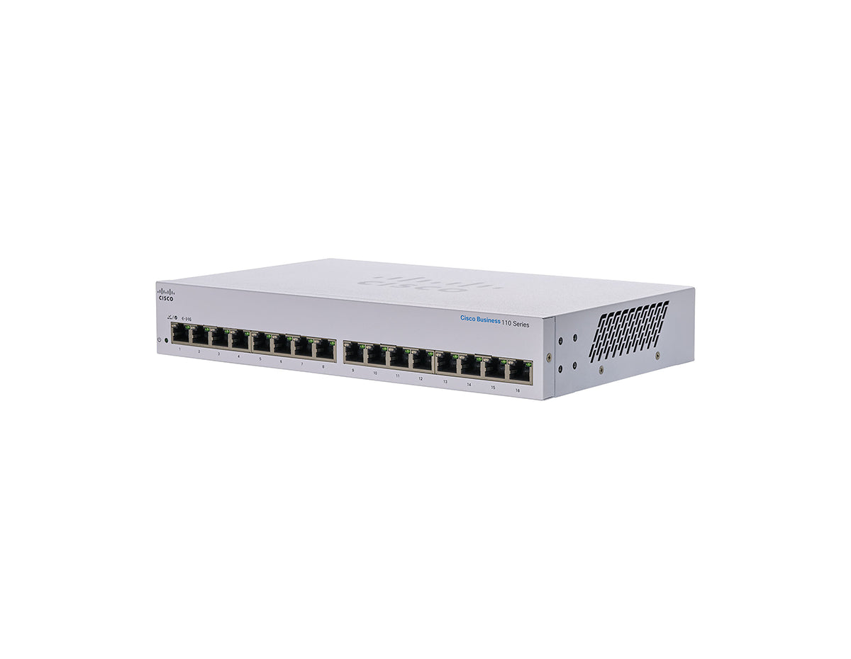 The Cisco CBS110-16T is a 16-port Gigabit Ethernet switch that delivers fast, reliable networking for small businesses. Designed for plug-and-play simplicity, this unmanaged switch requires no configuration and provides high-performance connectivity for computers, printers, and other devices. With its fanless design and energy-efficient operation, it is perfect for offices and noise-sensitive environments.