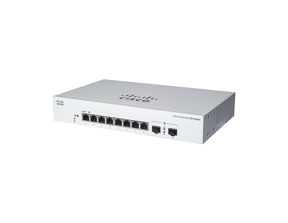 The Cisco CBS220-8T-E-2G is a smart-managed 8-port Gigabit Ethernet switch designed for small businesses that require reliable, high-speed connectivity. With 8 Gigabit Ethernet ports and 2 Gigabit SFP uplink ports, this switch offers flexible connectivity options and advanced Layer 2 features, making it ideal for improving network performance and scalability. Its fanless design ensures quiet operation, making it perfect for offices or noise-sensitive environments.