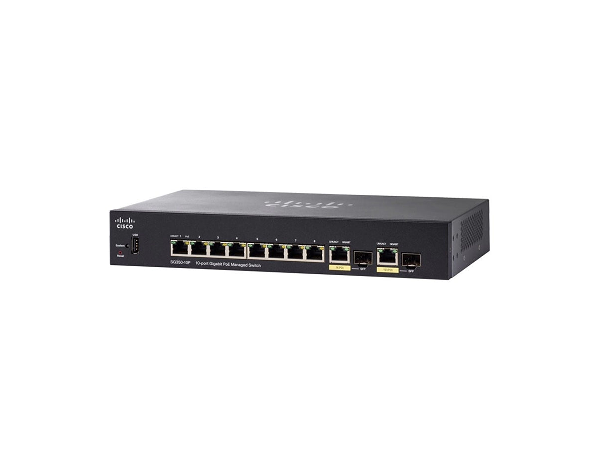 The Cisco SG350-10P-K9 is a compact, managed switch designed for small businesses that require high performance and flexibility. Featuring 8 Gigabit PoE+ ports with a 62W PoE power budget and 2 Gigabit combo ports, this switch offers advanced security, robust performance, and scalability, making it ideal for powering network devices such as IP phones, cameras, and wireless access points.