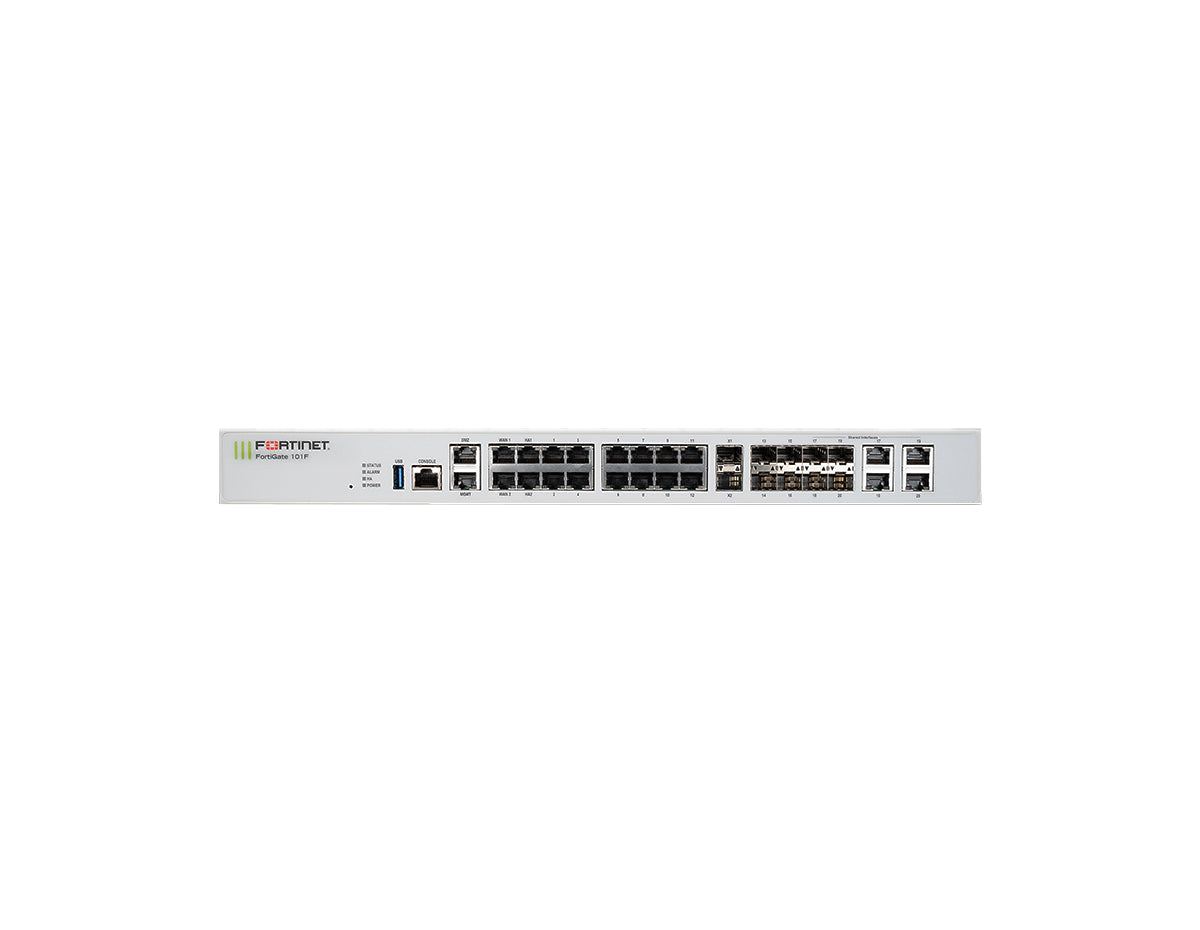 22 x GE RJ45 ports (including 2 x WAN ports, 1 x DMZ port, 1 x Mgmt port, 2 x HA ports, 16 x switch ports with 4 SFP port shared media), 4 SFP ports, 2x 10G SFP+ FortiLinks, 480GB onboard storage, dual power supplies redundancy.