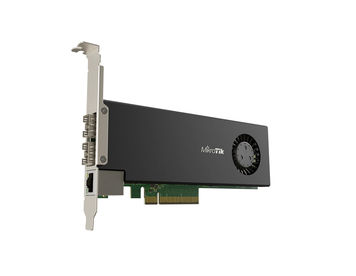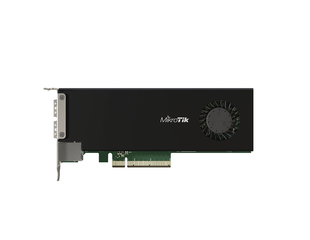 The CCR2004-1G-2XS-PCIe is a network interface card with comprehensive router functionalities, providing a convenient solution for establishing 25 Gigabit networks. Equipped with 4 GB of RAM, 128 MB of NAND storage, and a robust quad-core ARMv8 64-bit CPU, this device is capable of managing various tasks such as firewalls, user management, access control for home media and file servers, and traffic control in data centers, eliminating the necessity for a separate router.