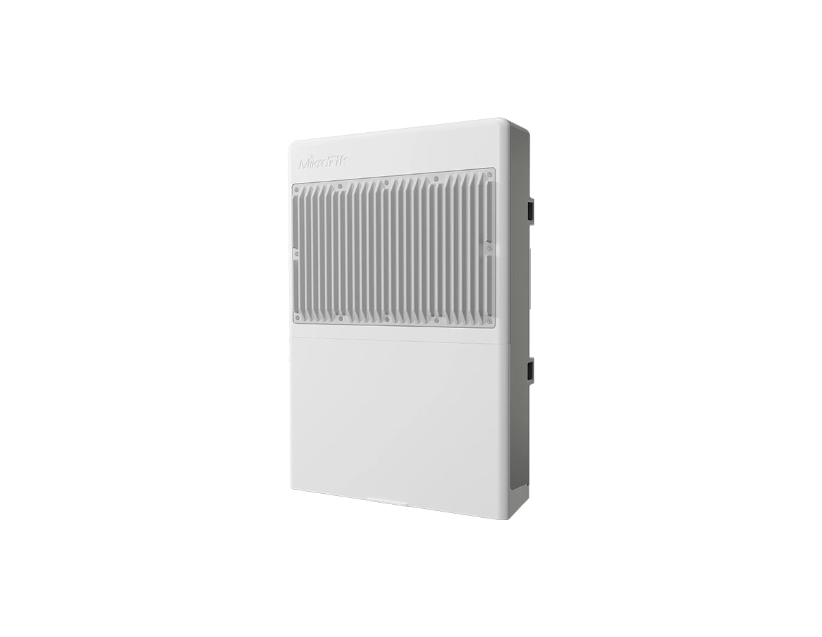 The CRS318-16P-2S+OUT has 16 Gigabit Ethernet ports with PoE-out and two SFP+ ports for 10G fiber uplinks. It can achieve a non-blocking throughput of 36 Gbps, a switching capacity of 72 Gbps, and a forwarding rate of 53.6 Mpps. The durable and space-efficient outdoor casing enables the switch to be installed in various environments, including moist attics, shafts, towers, masts, and poles using hose clamps.