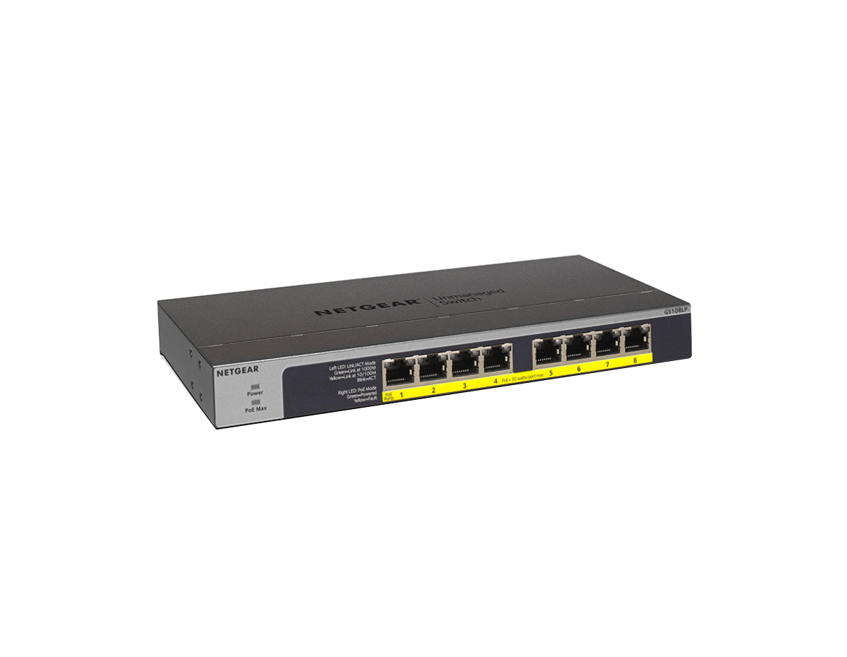 The GS108LP-100EUS is a switch from the Netgear Gigabit Unmanaged Switch family. The NETGEAR Gigabit Unmanaged Switch series offers a cost-effective solution for businesses seeking to expand their network capabilities. Utilizing innovative PoE+ integrated technology, this series allows for easy adjustment of the power budget by purchasing a new power supply, thereby ensuring small business networks’ future scalability and financial viability.