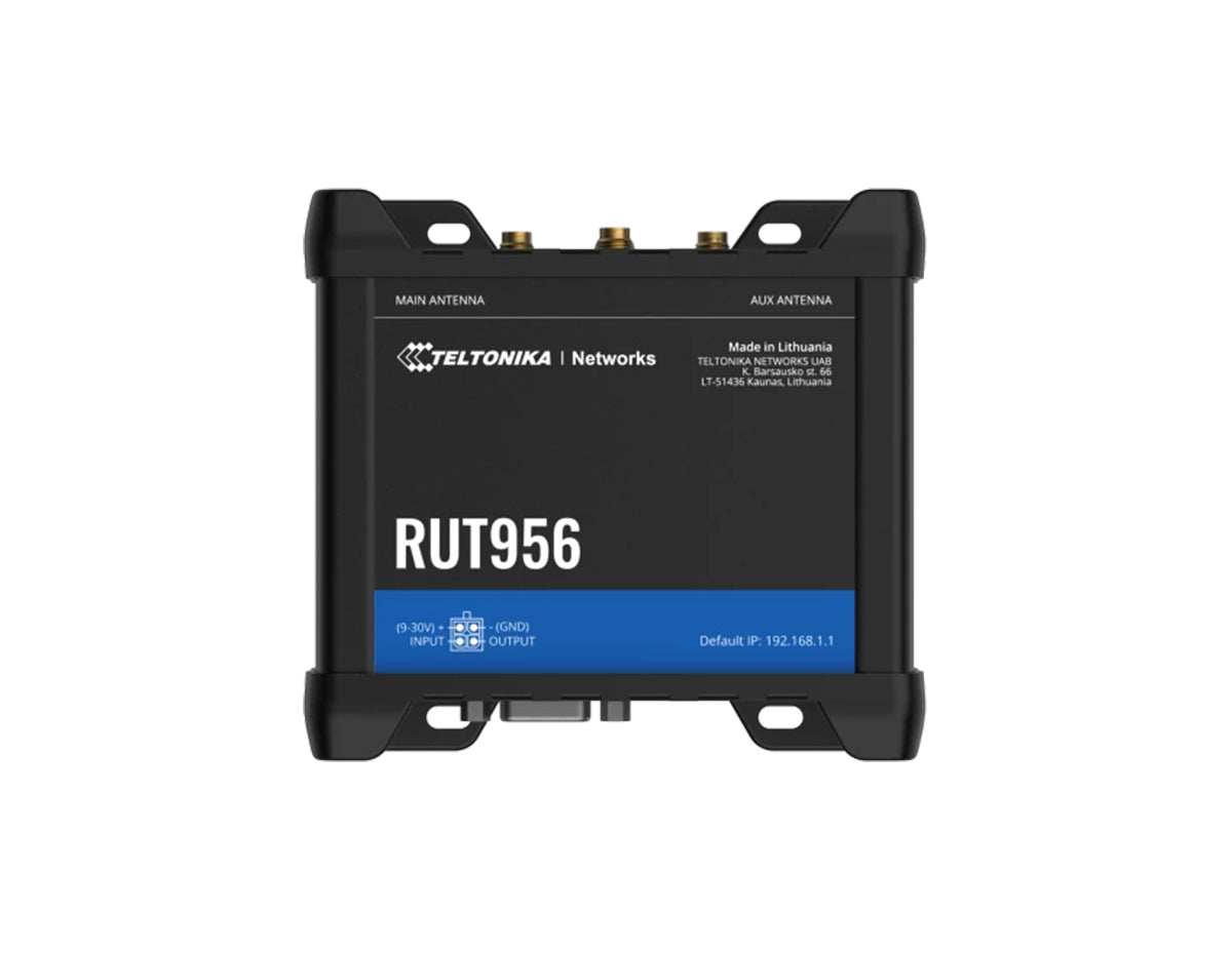 The RUT956 is an industrial router that integrates dual-SIM cellular 4G LTE, Wi-Fi, wired connectivity features, and GNSS capabilities. It includes automatic WAN failover to maintain solution uptime in case of primary connection failure. Furthermore, the router’s serial communication interfaces facilitate the integration of diverse devices into the solution ecosystem, including legacy equipment.