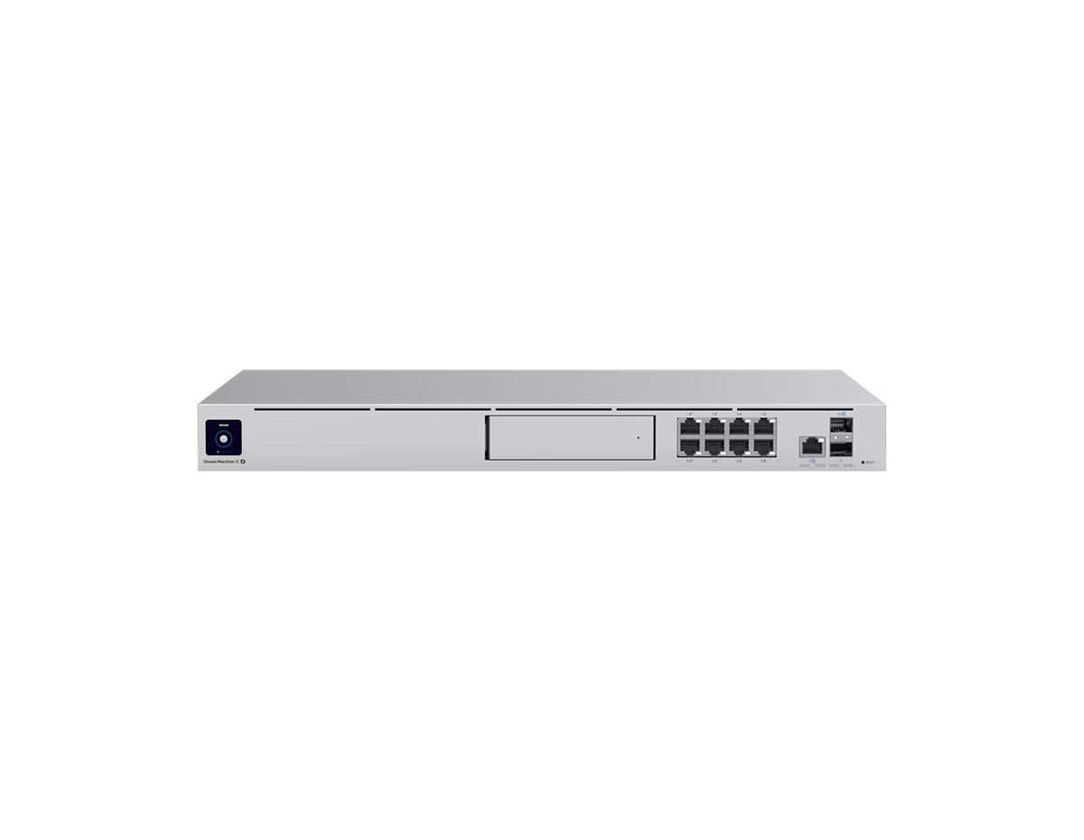 The Dream Machine Special Edition (UDM SE) is a professional-grade UniFi OS Console designed to assist both residential and commercial property owners in effectively expanding and managing their networks. It features high-speed, dual-WAN connectivity (10G SFP+ and 2.5GbE RJ45 ports), a Gigabit, PoE switch, and a network video recorder (NVR) with 128 GB of internal storage. Operated by UniFi OS, the UDM SE provides comprehensive oversight of all UniFi devices, such as access points, protect cameras, talk phones, and Access readers. Furthermore, it is a forward-looking console, as it will support all forthcoming UniFi OS applications.