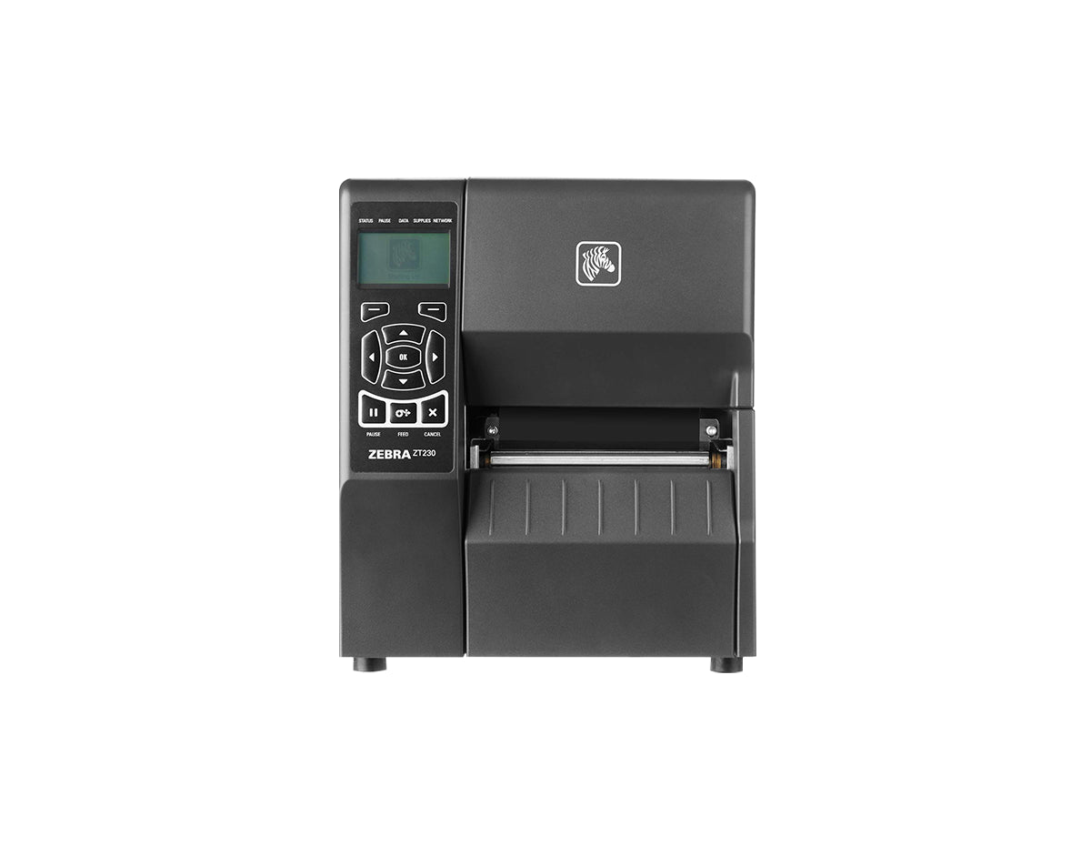 Detail: Zebra ZT23043-T01200FZ (ZT230) is a high-resolution 300 dpi industrial thermal transfer barcode label printer, featuring Serial, USB, and Ethernet connectivity for efficient and precise label printing